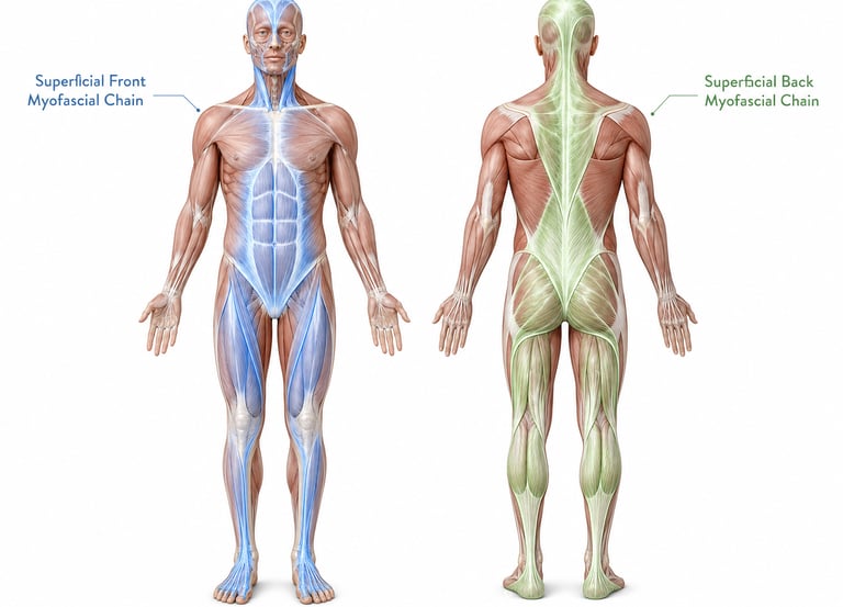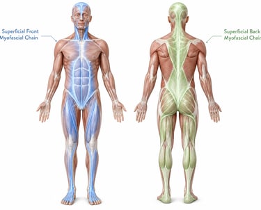 Tiesioginio miofascijinio atpalaidavimo metodas. Priekinė ir nugarinė paviršinė miofascijinės grandinės.